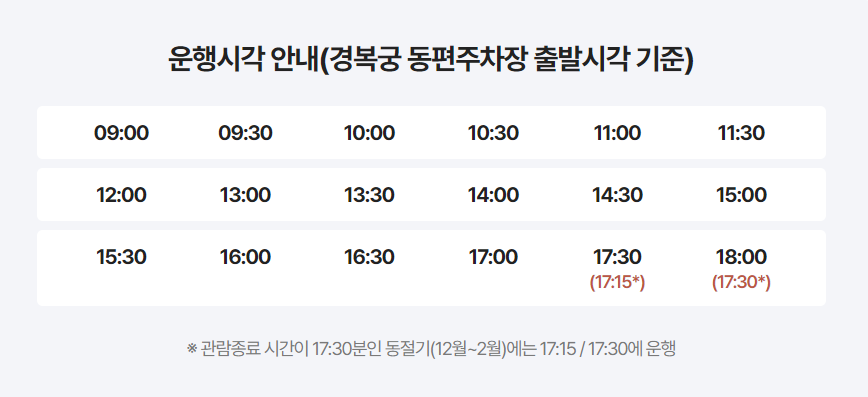 12월에서 2월까지는 17시 반까지만 관람이 가능합니다.
