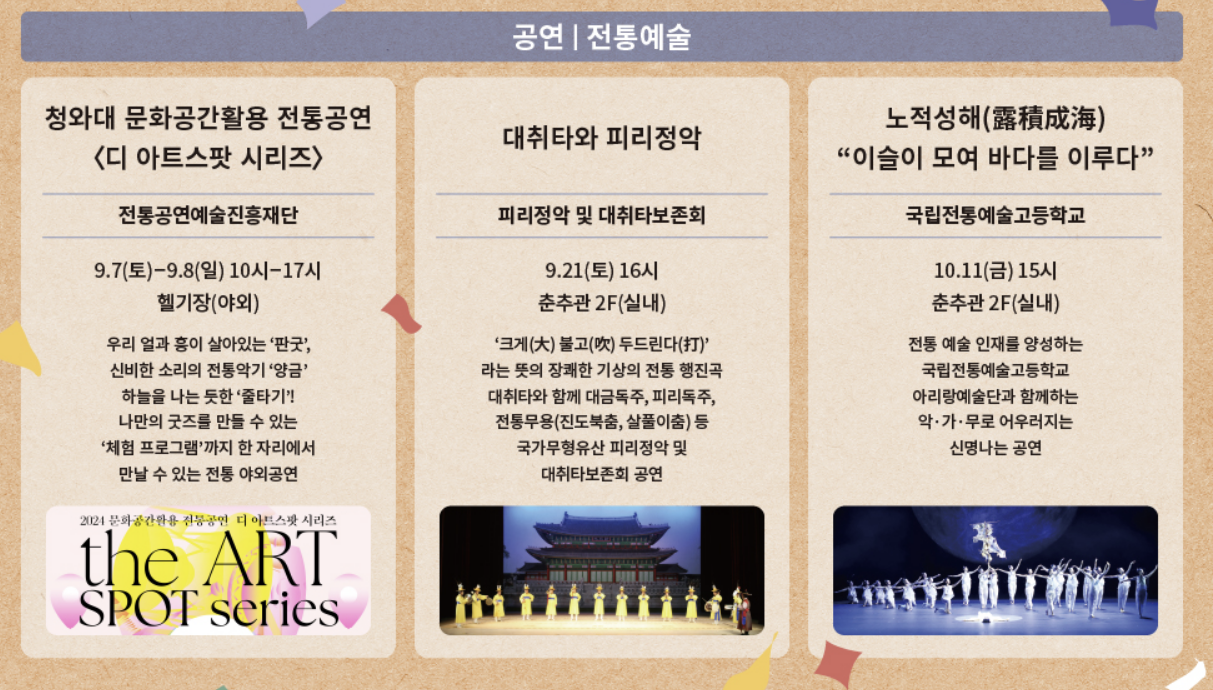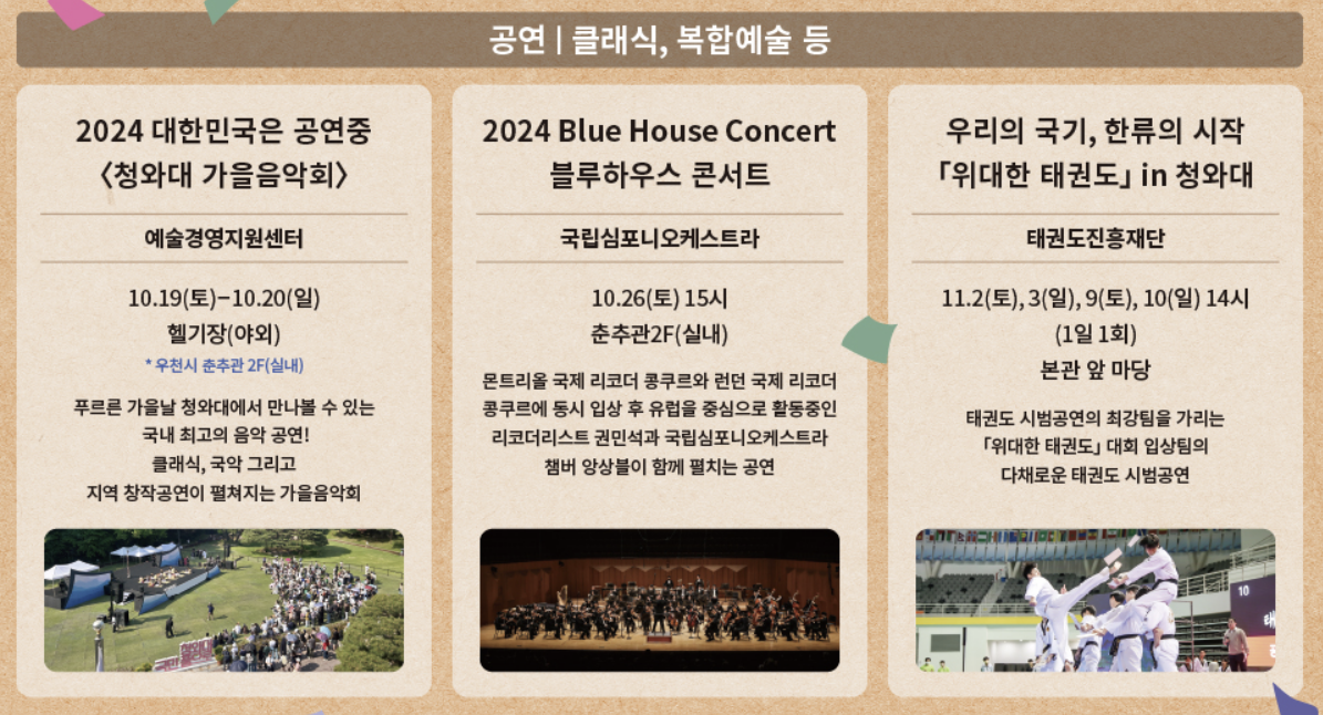 현재 청와대 개방 2주년을 기념하여 다채로운 행사, 공연도 있다고 하니 이용해보세요