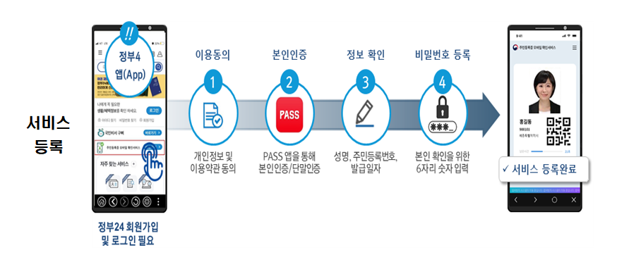 정부24 앱에서 서비스 등록을 해주셔야합니다.